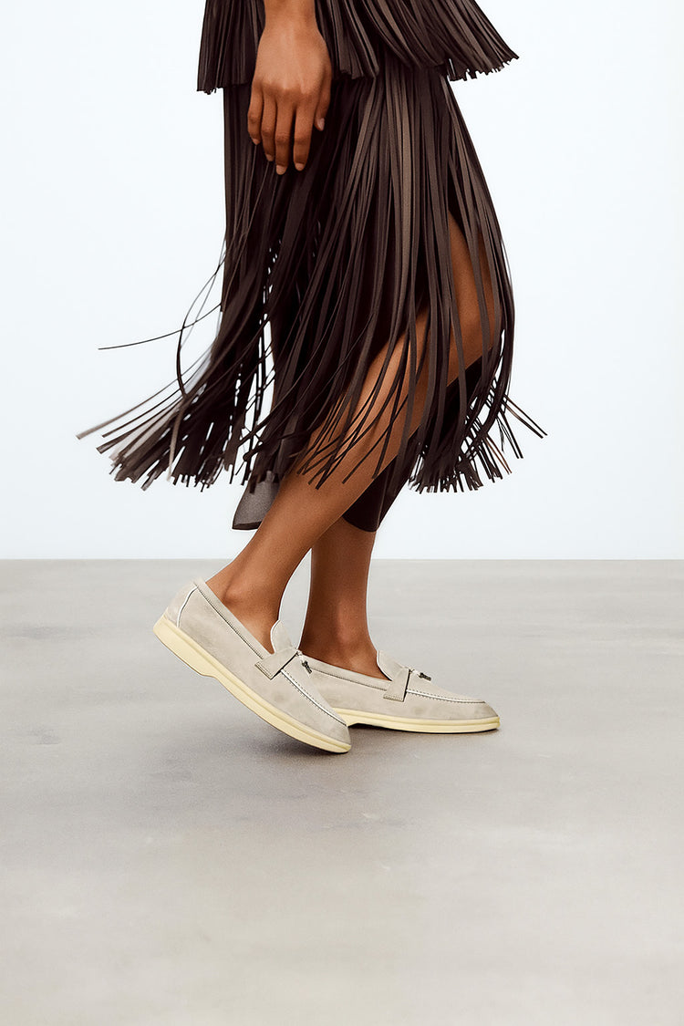Discover the iconic Loro Piana Women's Summer Charms Walk Loafers in luxurious suede goatskin.